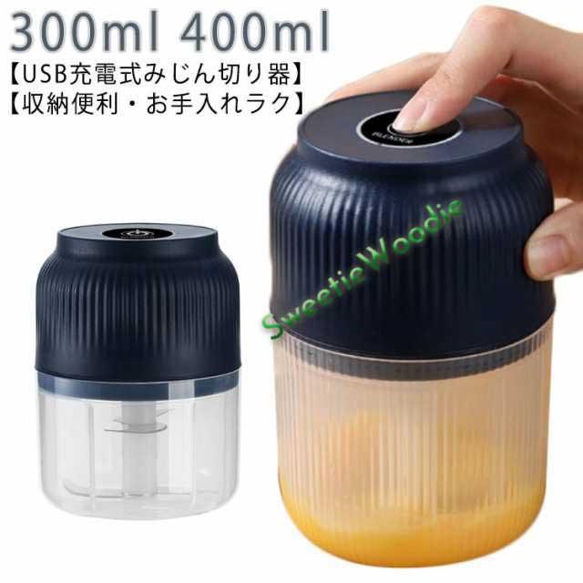 小型 みじん切り器 USB充電式 ミキサー みじん切り器 大根おろし器 チョッパー 離乳食 フードプロセッサー 内蓋付き 300ml 400ml 野菜 カッター コードレス 電動 泡立て器