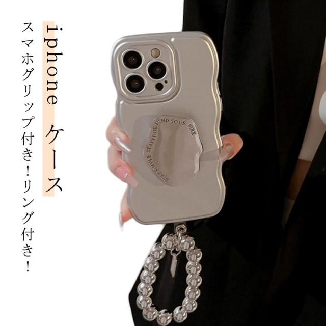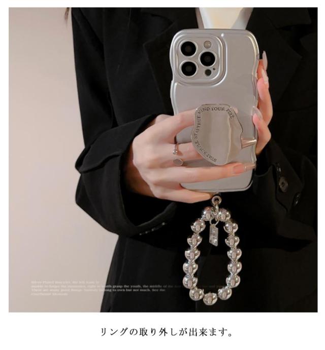iphone15 iphone14promax plus ケース リング付き iPhone15promax iphone14 iphone14pro ソフトケース iphone11 ケース スマホケース 韓国 iphone13 iphone12 ケース シルバー なみなみ スマホグリップ plus ケース 可愛い おしゃれ