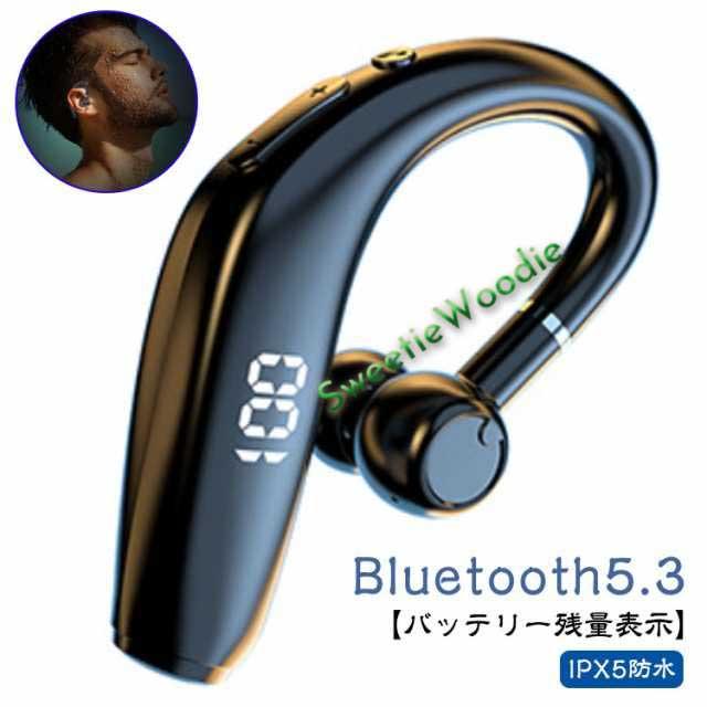 Bluetooth5.3 イヤホン ブルートゥースイヤホン IPX5 防水 残量表示 ワイヤレスイヤホン ヘッドセット 耳掛け型 片耳 高音質 マイク内蔵 超長待機 180°回転 左右耳兼用 iPhone/Android 在宅勤務用 通勤/通学 最新型 急速充電 ノイズキャンセリング