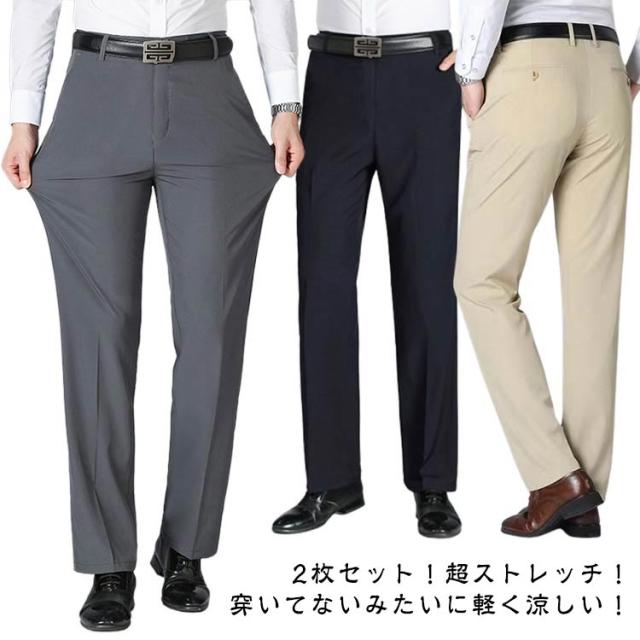 ストレッチ 吸水速乾 アイスシルクパンツ ビジネスパンツ ズボン 大きいサイズ 2枚セット 涼しい スラックス メンズ チノパン 裾上げ済み ゴルフウェア 清涼 涼感 夏 ゴルフパンツ 接触冷感 ロングパンツ スポーツパンツ 無地 軽量 薄手