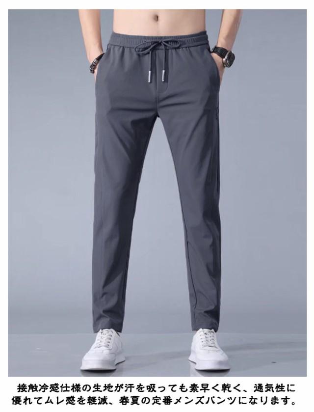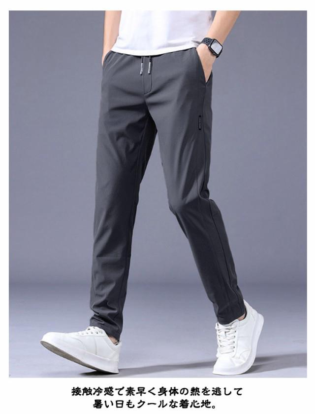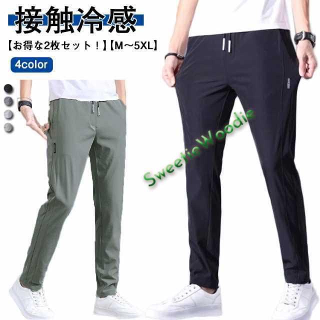 【2枚セット】アイスシルクパンツ 冷感パンツ メンズ チノパン 接触冷感 ひんやり 涼しい ロングパンツ イージーパンツ 薄手 ゴルフパンツ ストレッチ 伸縮 通気 速乾 スポーツパンツ カジュアル 無地 大きいサイズ 夏 春 秋 クール感 uvカット 涼しい ゆったり 送料無料