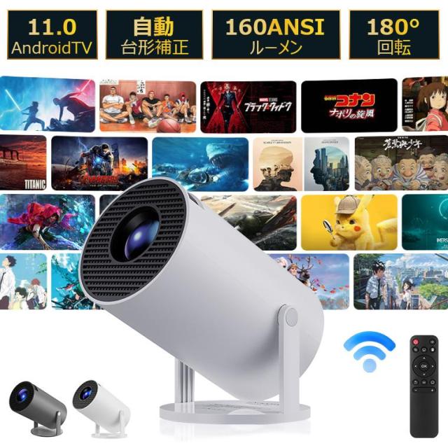 プロジェクター 4K対応 本体 軽量 家庭用 天井投影 小型 1080P 5G WI-FI6 Bluetooth 高解像度 台形補正 DVD スマホ Android TV11.0壁