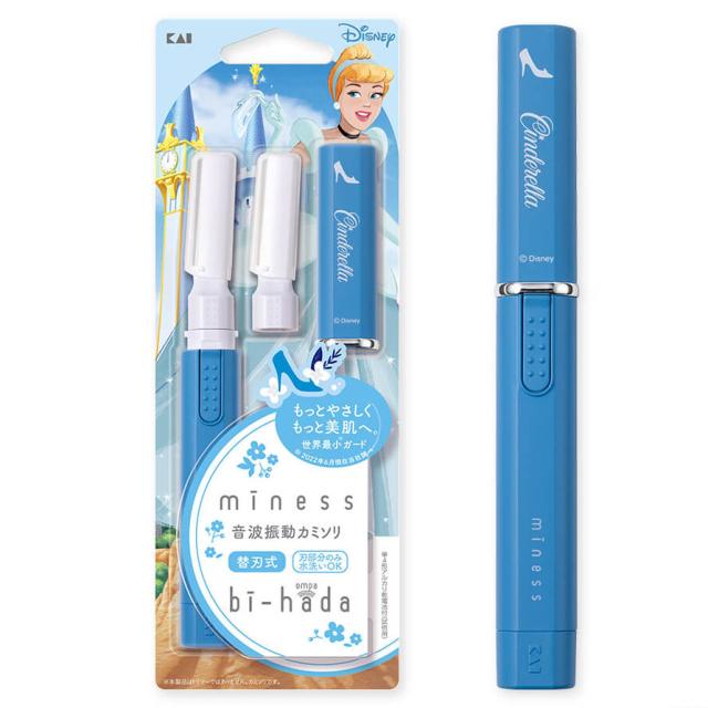 ディズニープリンセス「シンデレラ」の限定デザイン。敏感肌にもやさしい miness フェイス用音波振動カミソリ bi-hada ompa L (替刃2個付)