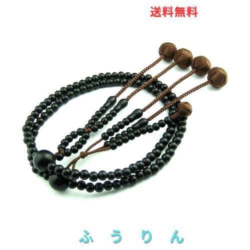 ◆商品名:妙蓮花 数珠 日蓮宗 男性 尺二 黒檀 梵天房 本式 数珠 念珠 108玉 法華 数珠袋付 天然木 葬儀 葬式 法事 法要 二輪 二連 (こげ茶色)