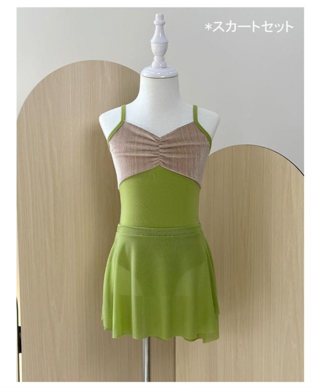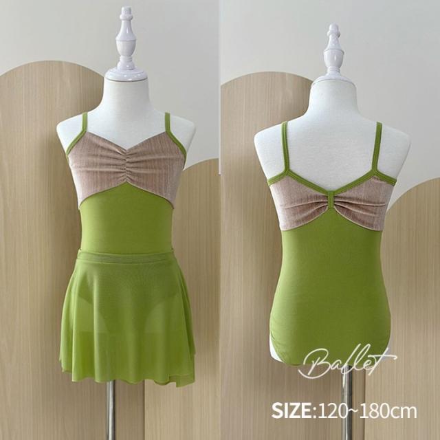 バレエ レオタード 子供 ワンピース バレエレオタード 練習着 演出 キャミソール ノースリーブ スカート 体操 新体操 女の子 キッズ 子ども ジュニア 発表会 バレリーナ バレエ衣装 バレエダンス 可愛い 練習 レッスン グリーン 緑