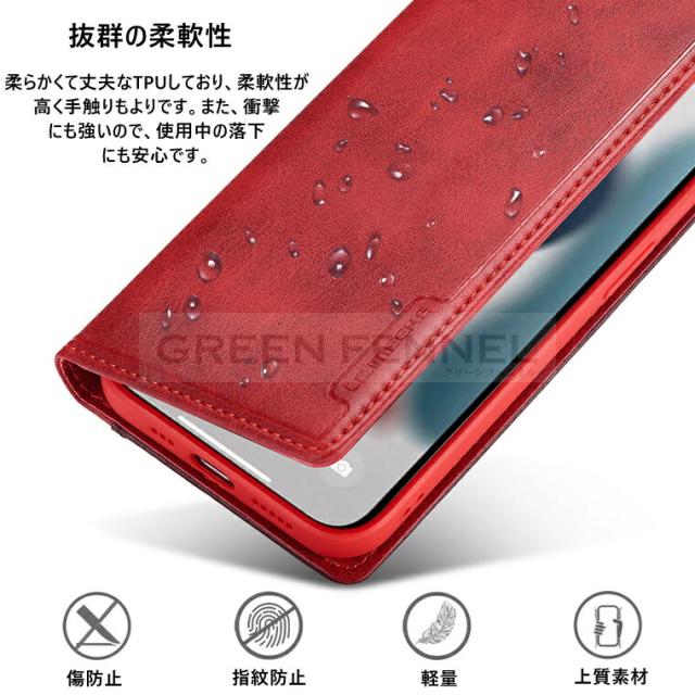 ■高品質のPU素材を採用しており、見た目も触り心地も優れているスマホケースです。装着部分は柔軟性のあるTPU製で、着脱しやすく衝撃も吸収してくれます。