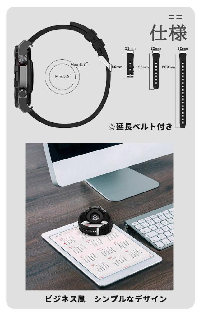 HUAWEI Watch Ultimate 交換バンド ファーウェイ ウォッチ ultimate ベルト HUAWEI Watch Ultimate 交換バンド バンド ソフト シリコン製 ビジネス 高品質 高級感 シンプル かっこいい おしゃれ 人気 耐衝撃 防水 サイズ調節可能 延長ベルト付き ベルト 交換ベルト 22mm