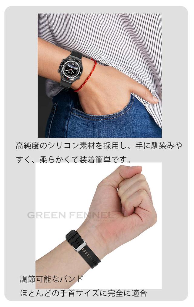 多孔性のデザインで、手首のサイズにより調節可能できます。