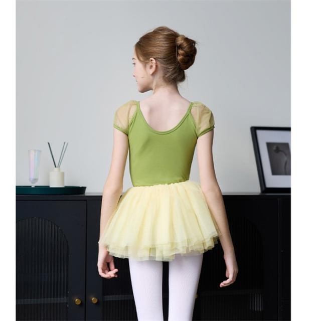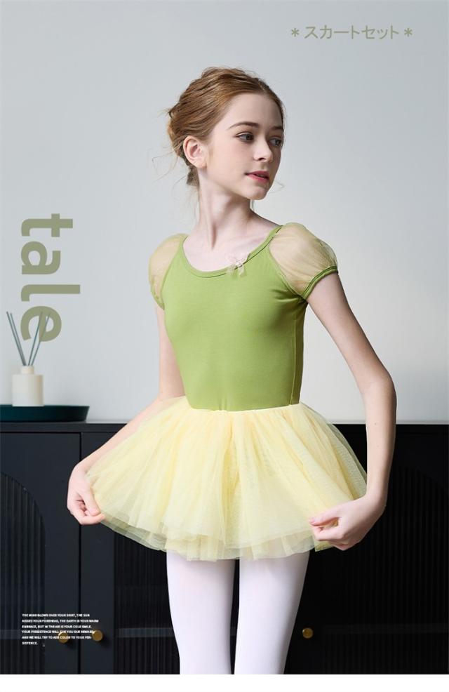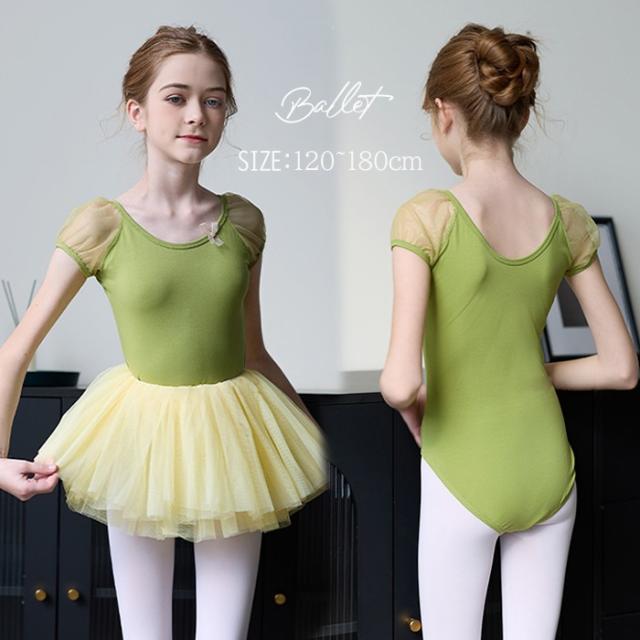 バレエ レオタード 子供 ワンピース バレエレオタード 練習着 演出 半袖 スカート 体操 新体操 女の子 キッズ 子ども ジュニア 発表会 バレリーナ バレエ衣装 バレエダンス 可愛い 練習 レッスン グリーン 緑