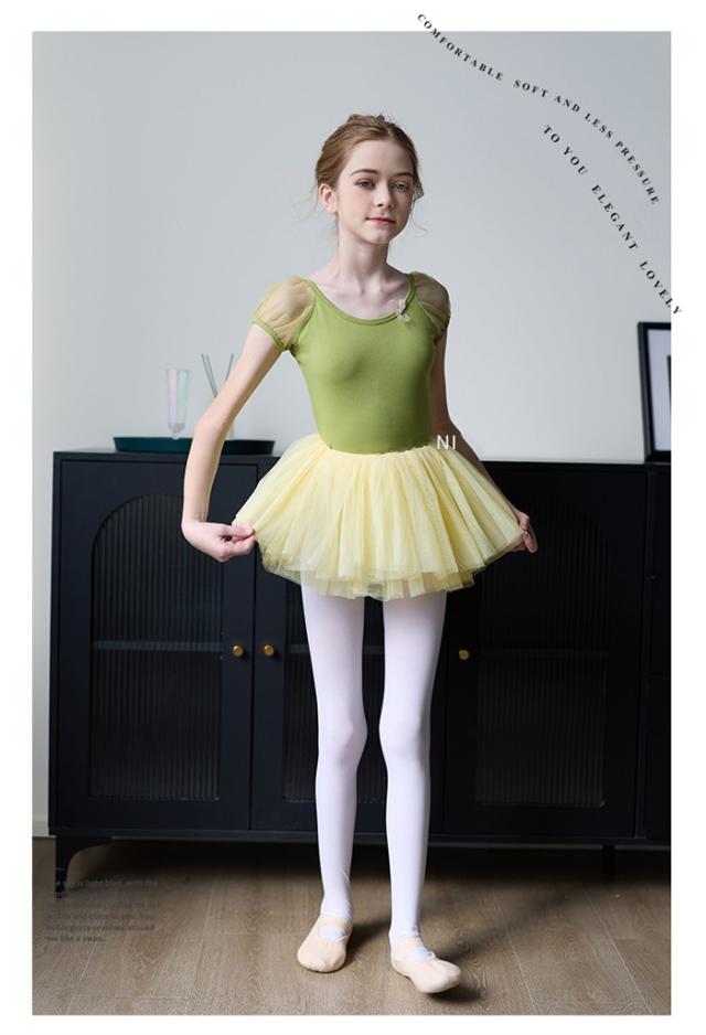 バレエ レオタード 子供 ワンピース バレエレオタード 練習着 演出 半袖 スカート 体操 新体操 女の子 キッズ 子ども ジュニア 発表会 バレリーナ バレエ衣装 バレエダンス 可愛い 練習 レッスン グリーン 緑 xz319d7d7m5