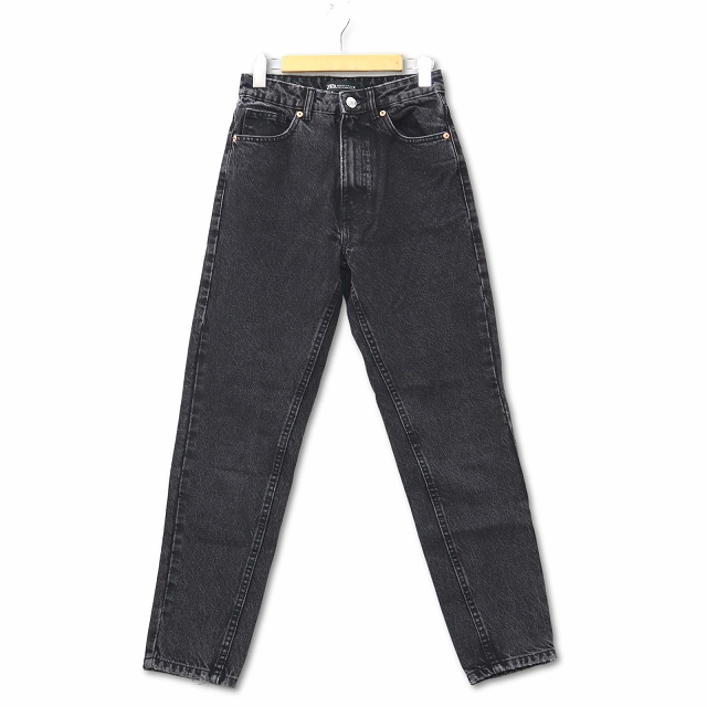 【中古】ザラ ZARA ケミカルウォッシュ テーパード ブラック デニムパンツ ジーンズ 黒 EUR 34 (XS相当) レディース
