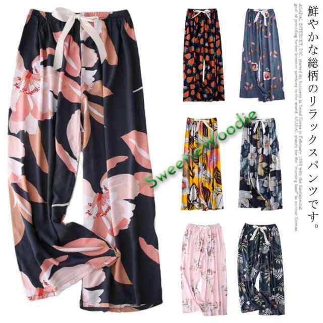 ルームウェア 夏物ルームウェア 花柄リラックスパンツ レディース 夏涼しい ボトムス リラックスパンツ ロングパンツ 柄物 部屋着 快適 フリーサイズ 送料無料