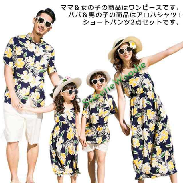 ペア アロハシャツ ペアルック 親子ペア メンズ パパ 男の子 アロハシャツ+ショートパンツ 男の子2点セット ペアルック 家族お揃い カップルペアルック 親子コーデ ママ レディース 女の子 キャミワンピース 花柄 アロハシャツ 夏 海 ビーチ リゾート 旅行