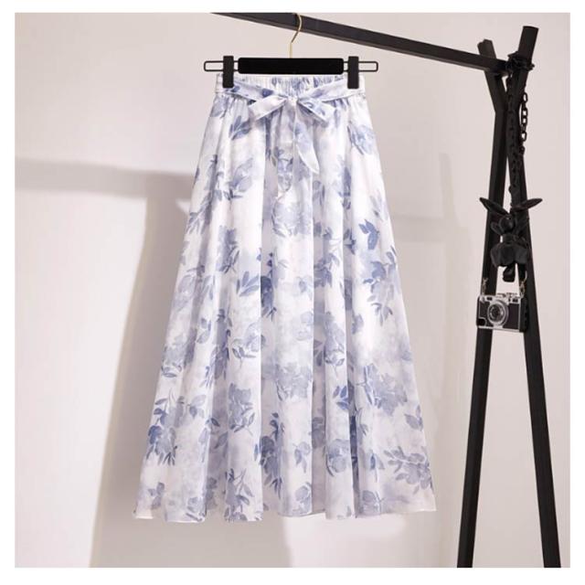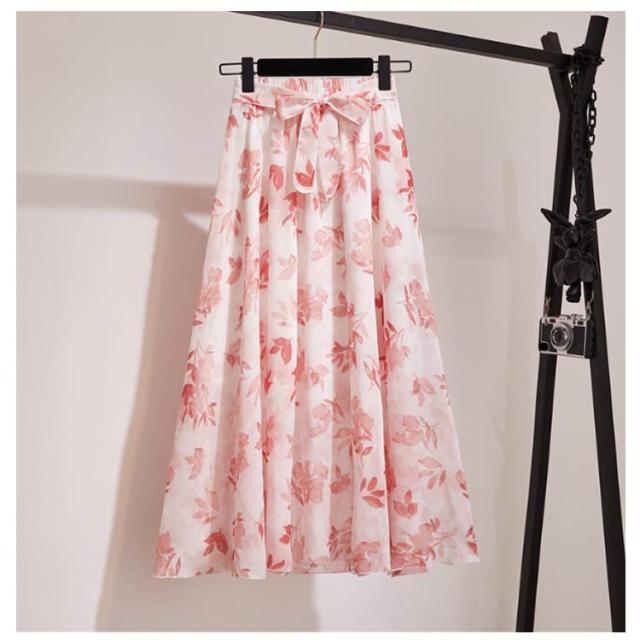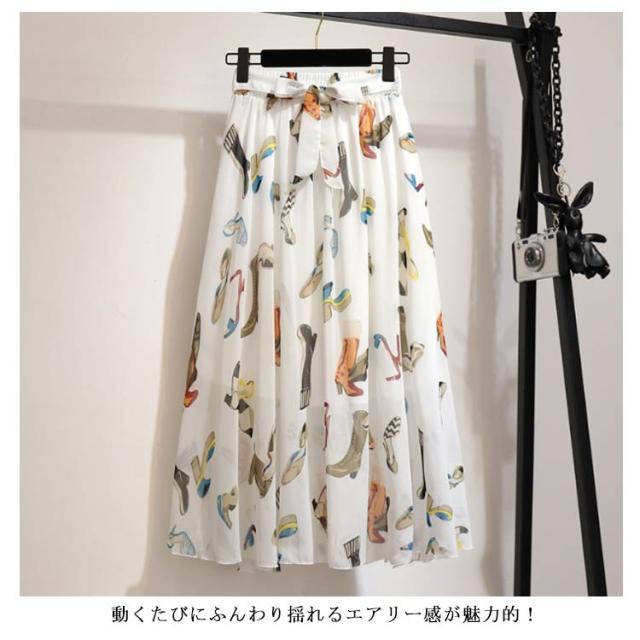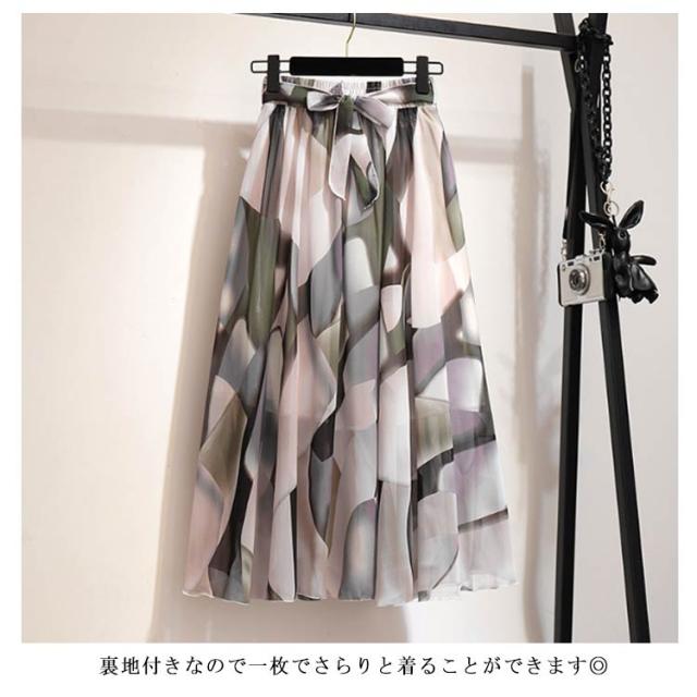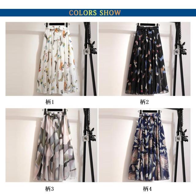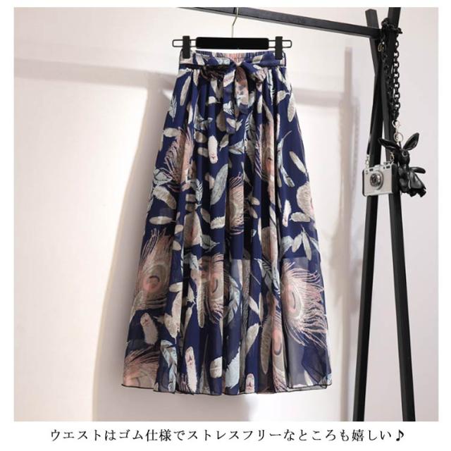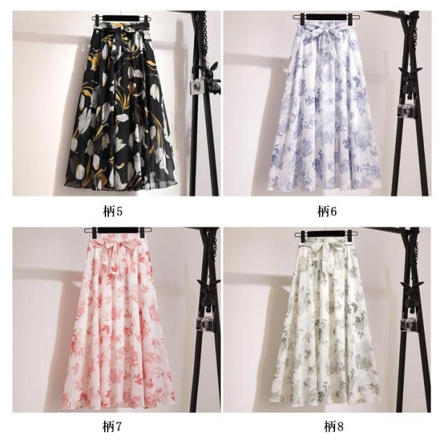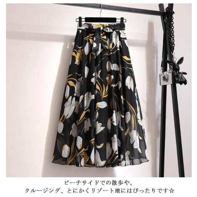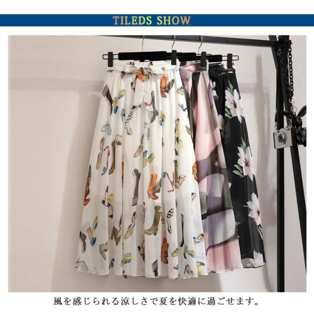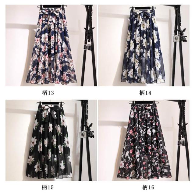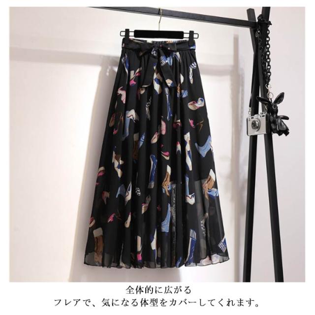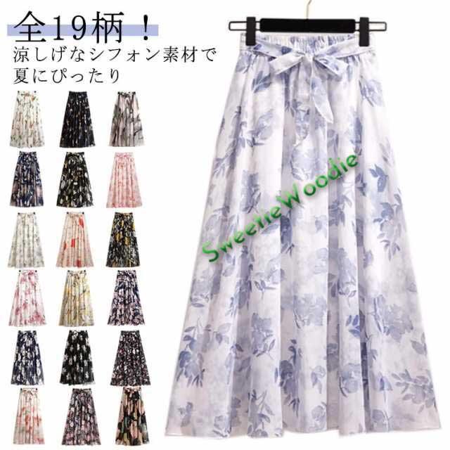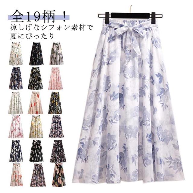 夏 スカート 春夏 フレアスカート ふんわり 裏地付き 総柄 ミディアム丈スカート シフォン シフォンスカート 花柄 ウエストゴム リゾートスカート レディース ロング 春服 体型カバー ゆったり お出かけ ふんわり