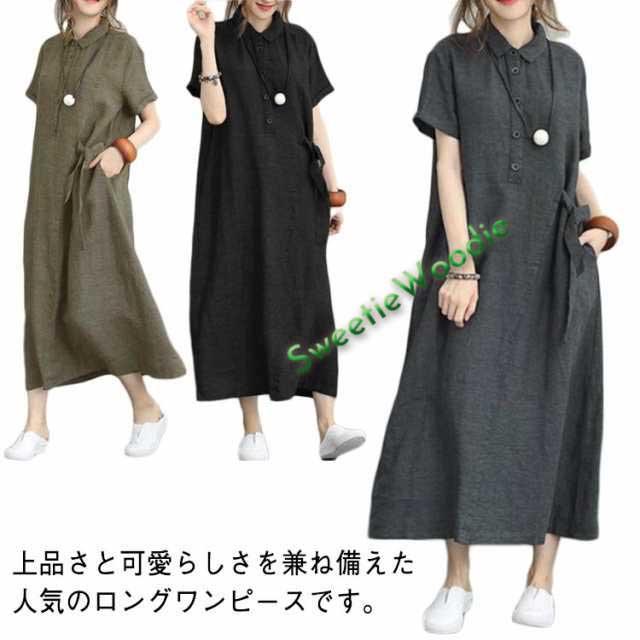 綿麻 ワンピース 半袖 レディース シャツワンピース ゆったり 無地 ワンピース 春夏 大きいサイズ お洒落 カジュアル ゆったり 体型カバー きれいめ 春夏 通勤