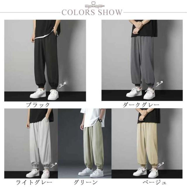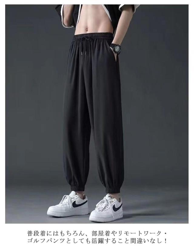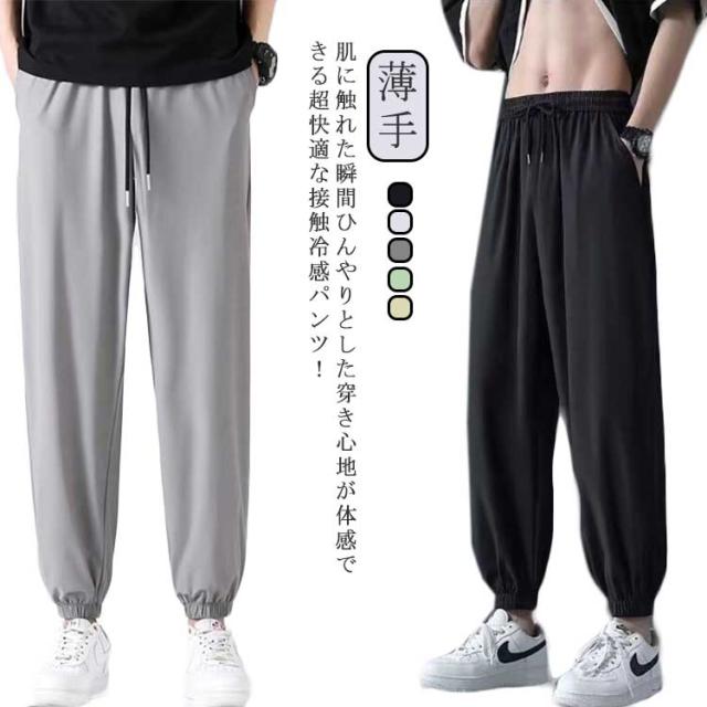 テーパード サルエルパンツ メンズ 接触冷感 接触冷感 ナイロン 薄手 冷感パンツ 接触冷感 涼しい 大きいサイズ 調整紐 接触冷感