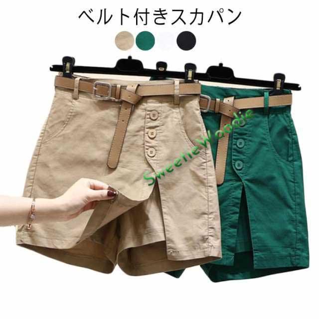スカパン レディース ベルト付き ミニ丈 ボトムス スカート スカパン ショートパンツ タイトスカート キュロット インナーパンツ 膝上丈 春夏 夏 低身長さん 小柄女性 きれいめ セクシー