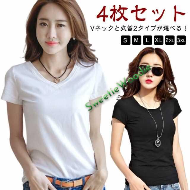 インナー 【4枚セット】 無地 Tシャツ カジュアル 半袖 S 無地tシャツ クルーネック カットソー 【4枚セット】 白Tシャツ インナーシャツ 丸首 シンプル きれいめ 夏 スリム 薄手 韓国 大きいサイズ レディース 送料無料 Vネック M L XL 2XL