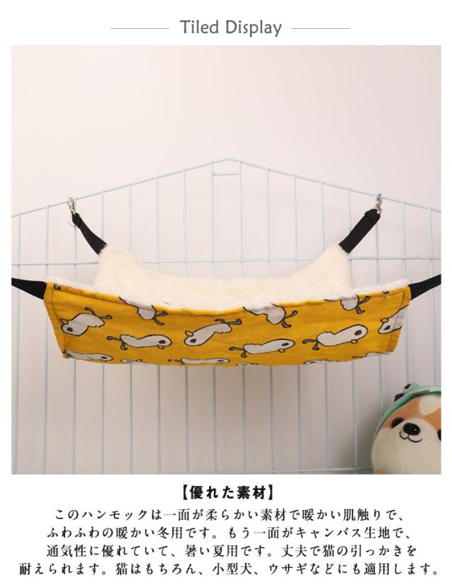 猫 ハンモック 吊り下げ ハンモック ベッド 椅子 両面使用 ケージ用 ペット用品 もこもこ ペット リバーシブル 通気性抜群 冬夏活用 耐引っ掻き 洗濯可能 簡易設置 猫用 ネコ 小動物 ハムスター ハンモック