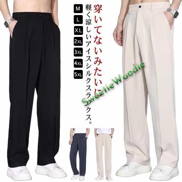 メンズ 接触冷感 大きいサイズ 吸水速乾 パンツ スラックス アイスシルクパンツ チノパン スラックス 夏 涼しい ワイドパンツ メンズ 清涼 涼感 ズボン ロングパンツ 伸縮性なし 無地 軽量 薄手 通気 ストレートパンツ 送料無料 父の日