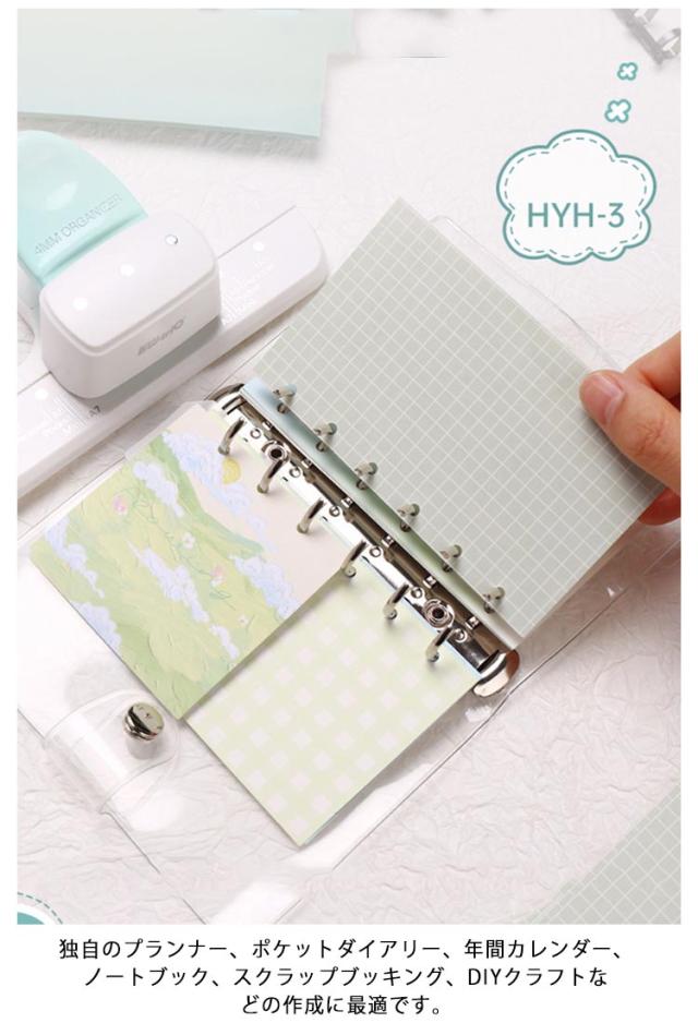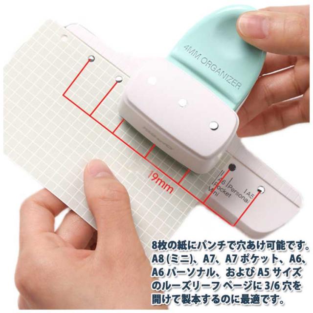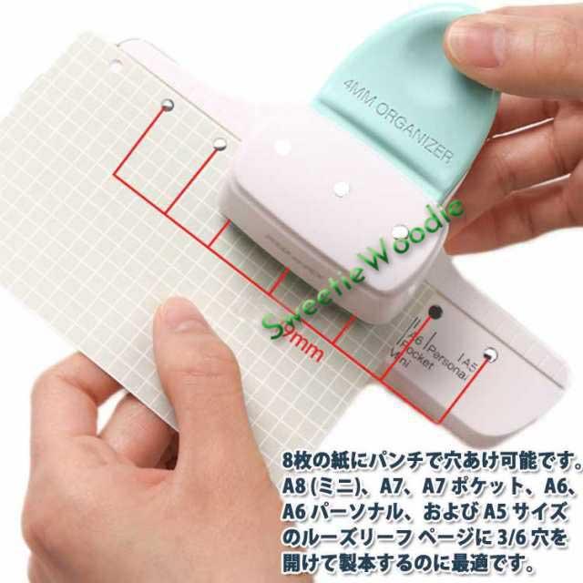 ルーズリーフパンチ ポケット A8 A6 A7 / ルーズリーフパンチ 穴あきパンチ 調整可能 3穴 ミニ / / パンチ A7 A4 ペーパーパンチャー 穴あけ / A6 パーソナル / A5対応 穴あけ8枚 オリジナル手帳 オリジナルノート プリント ノート 手帳作り 文房具 DIY