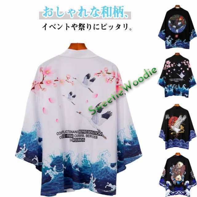 | おしゃれな和柄、イベントや祭りにピッタリ。 通気性に優れた、清涼感がある素材でこれからの季節には手放せない。 肩幅と身幅に余裕を持たせたビッグシルエットで楽な着心地。 夏のuv対策や冷房対策にもピッタリの一枚。 | |