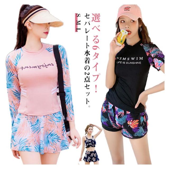 かわいい ママ水着 2点セット 6タイプ 水着 レディース パッド一体型 6タイプ おしゃれ 可愛い セクシー 体型カバー セパレート 大きいサイズ 露出控えめ 花柄