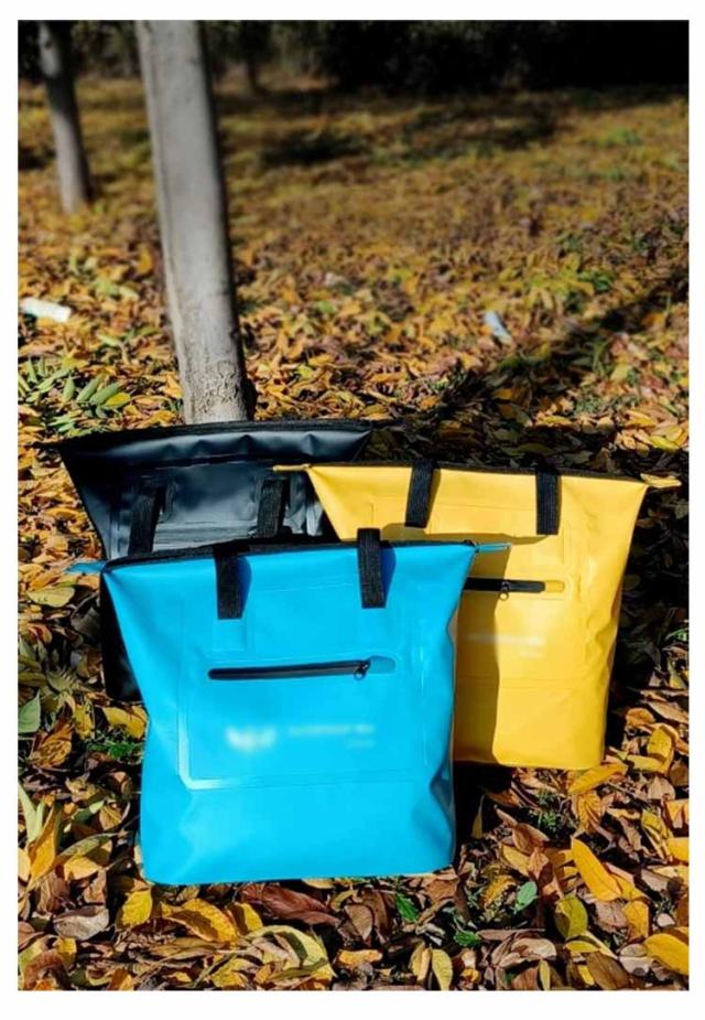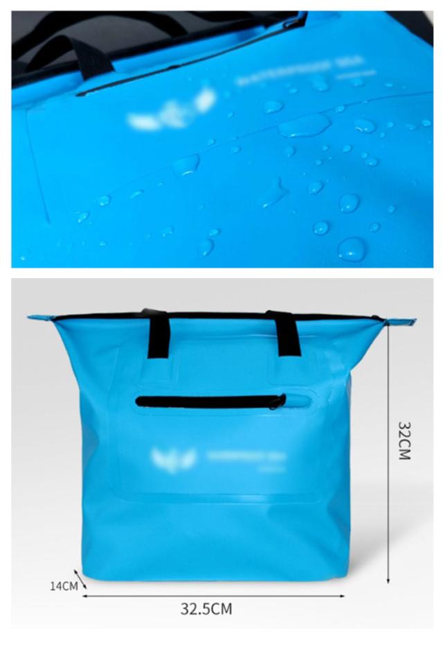 | 防水バッグ。 防水性の高いPVC生地を使用! 様々なシーンで活躍!プール、海、海水浴、シュノーケリング、ラフティング、カヌー、カヤック、スキー、スノボ、登山、ジム、フィットネス、ランニング、自転車、ツーリングバイク、フェス、梅雨時期の雨、雪山、などスポーツアウトドアシーンやタウンユースで活躍! | |