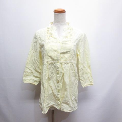 【中古】サンカンシオン 3can4on 七分袖 コットン ブラウス シャツ 2 黄 イエロー レース装飾 レディース