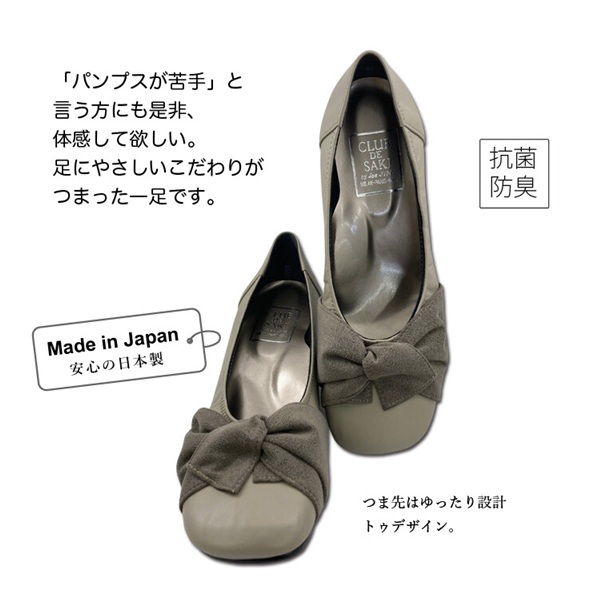 抗菌 防臭加工により全ての悩みを解決してくれるパンプス。
