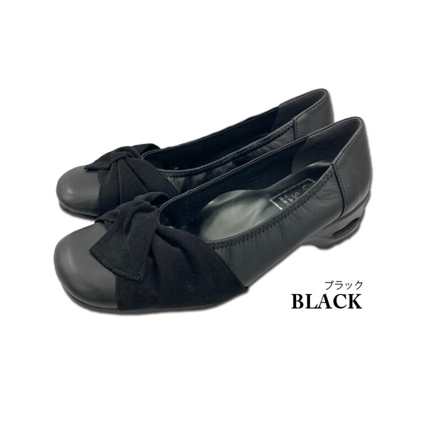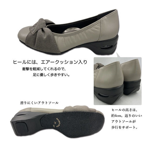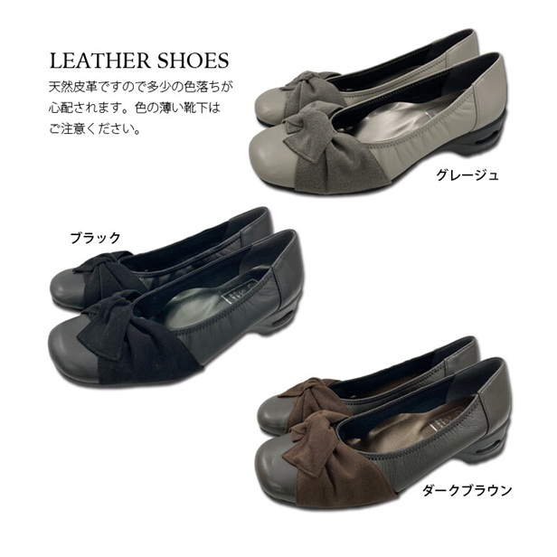日本製 本革 パンプス レザーパンプス 幅広 4e 外反母趾 あったか エアークッション リボン 牛革 レザー 天然皮革 抗菌 防臭 カジュアル 大人女子