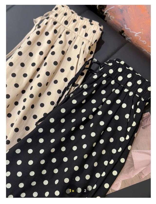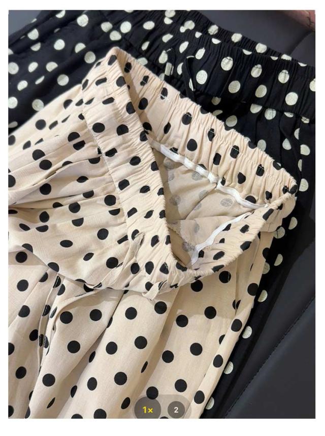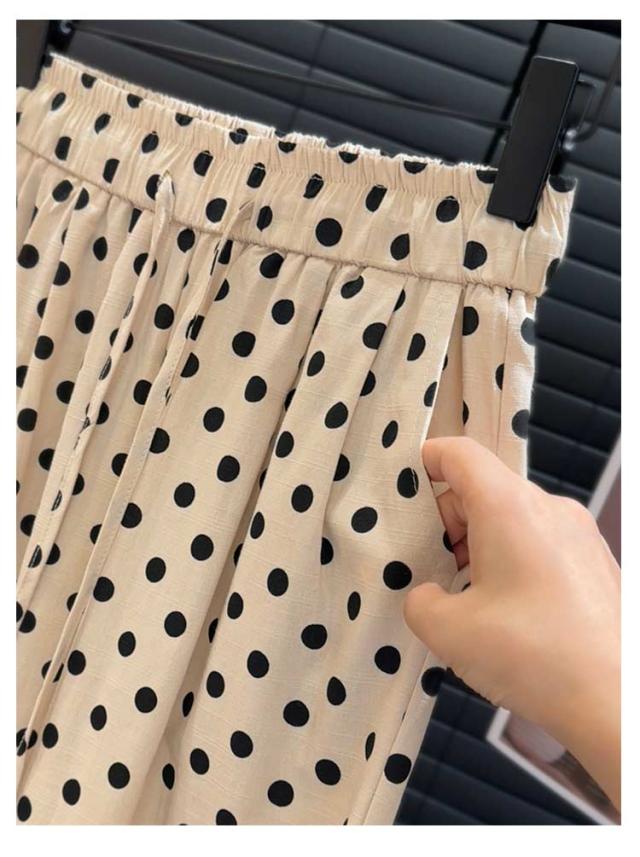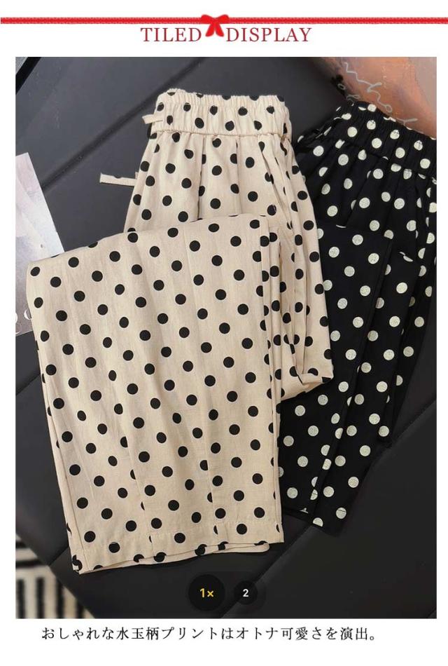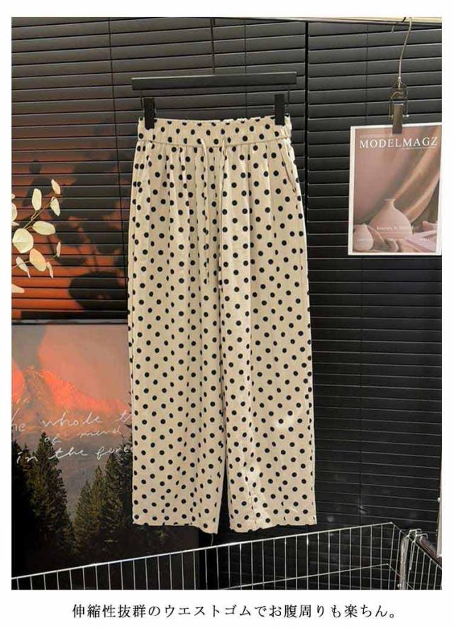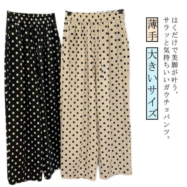 ワイドパンツ ガウチョパンツ レディース ボトムス ドット柄 ロングパンツ 春 夏 パンツ 水玉 大きいサイズ ゆったり 長ズボン ストレート カジュアル ウェストゴム 春夏 薄手 送料無料