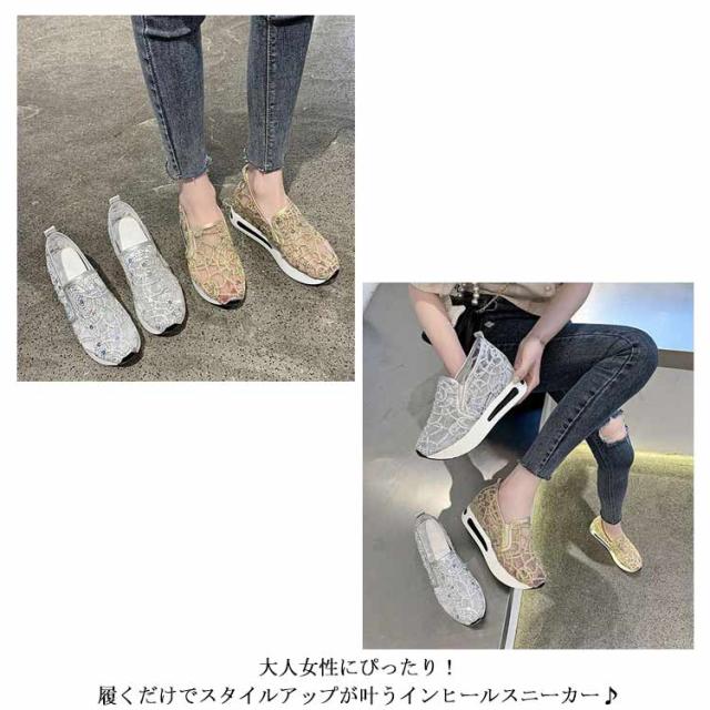スニーカー インヒールスニーカー レディース シューズ 靴 スリッポン レース 花柄 透け感 フラット 大きいサイズ 黒 厚底 インヒール2cm ヒール3cm ローカット プラットフォームスニーカー 厚底スニーカー 結婚式 和装 シースルー 春 夏