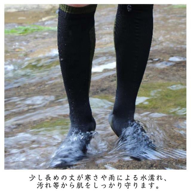| ・膝下からガードする完全防水ソックス。 ・防水シートを内蔵した三層構造により、外部からの水と風をシャットアウト。 ・中厚素材でしっかり防寒、暖かいです! ・防水でありながら透湿性にも優れているため、汗をかいても蒸れにくく活動しやすいのも助かります。 ・少し長めの丈が寒さや雨による水濡れ、汚れ等から肌をしっかり守ります。 ・ハイキングやトレッキング・登山、また寒冷化での作業などにも最適です。 | |