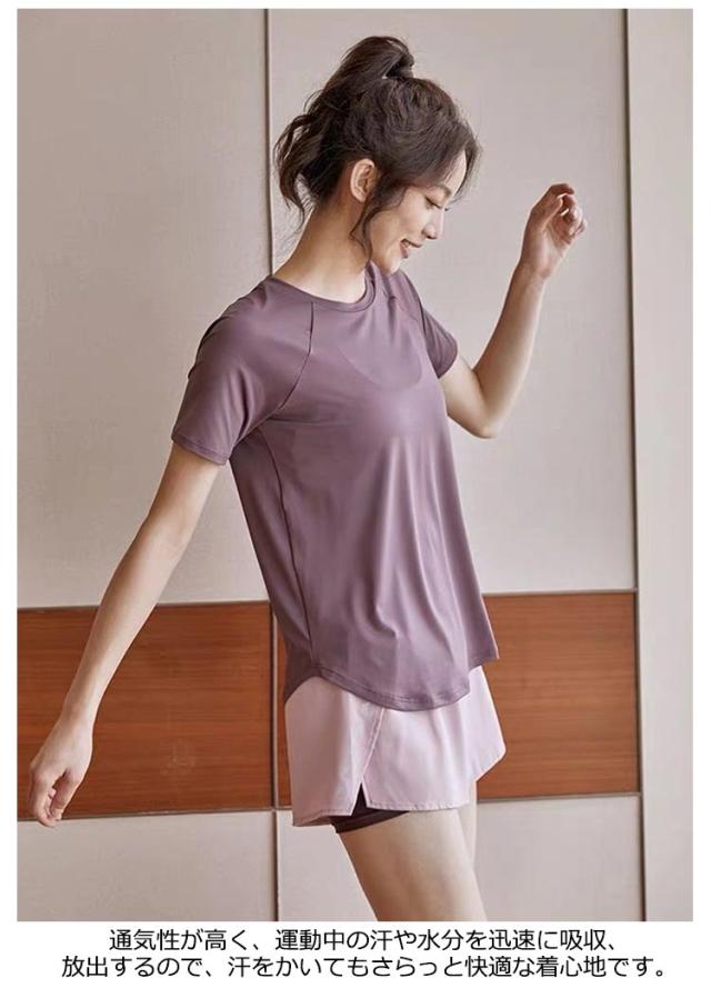 夏 クールビズ tシャツ シンプル 速乾 涼しい 春 仕事 ドライメッシュ レディース 半袖 薄手 仕事 tシャツ ヨガウェア トップス ヨガtシャツ ジムウェア おしゃれ無地 スポーツ ゴルフ フィットネス uvカット ホットヨガ ストレッチ ダンス 運動着