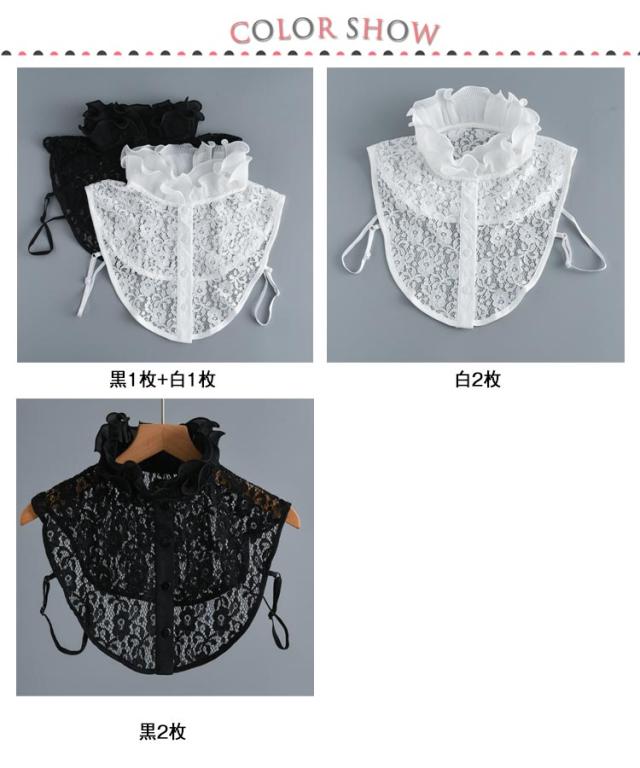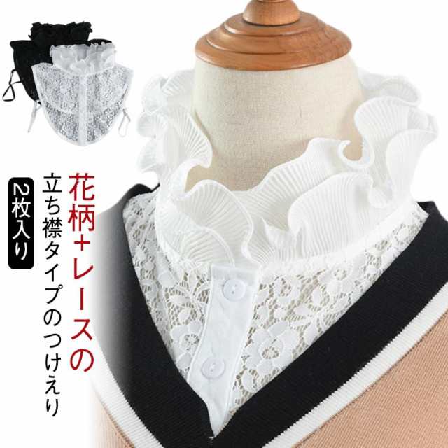 タートルネック つけ襟 つけえり 夏 つけ襟 レース つけ襟 つけ襟 つけえり レース つけ襟 フリル 付け襟 プリーツ 立ち襟 チュール チュール レディース ブラウス シャツ つけ衿 襟 花柄 2枚入りブラック/ホワイト フリルつけ襟
