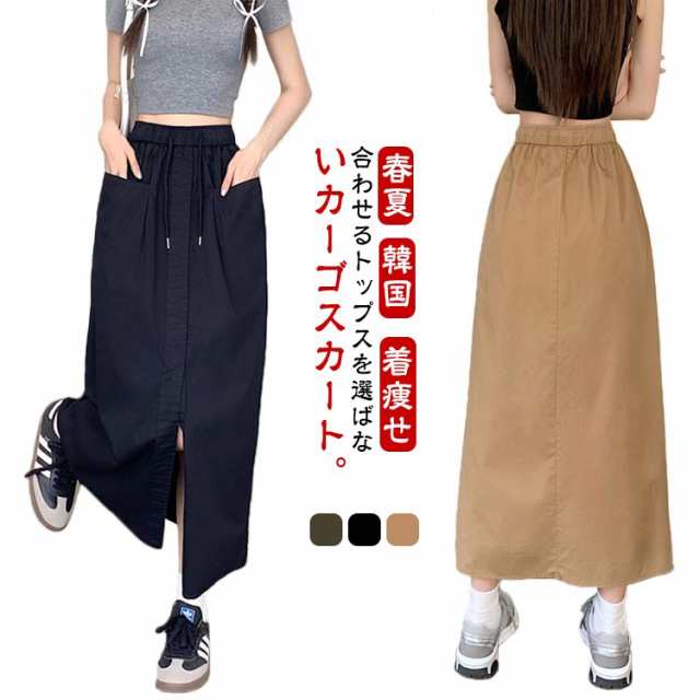 カーゴスカート レディース 夏 スカート ロングスカート タイトスカート ロング マキシ丈 Aライン 春夏 ボトムス ミリタリースカート ポケット付き スリット 大きいサイズ カジュアル 韓国ファッション おしゃれ 体型カバー 着痩せ 送料無料