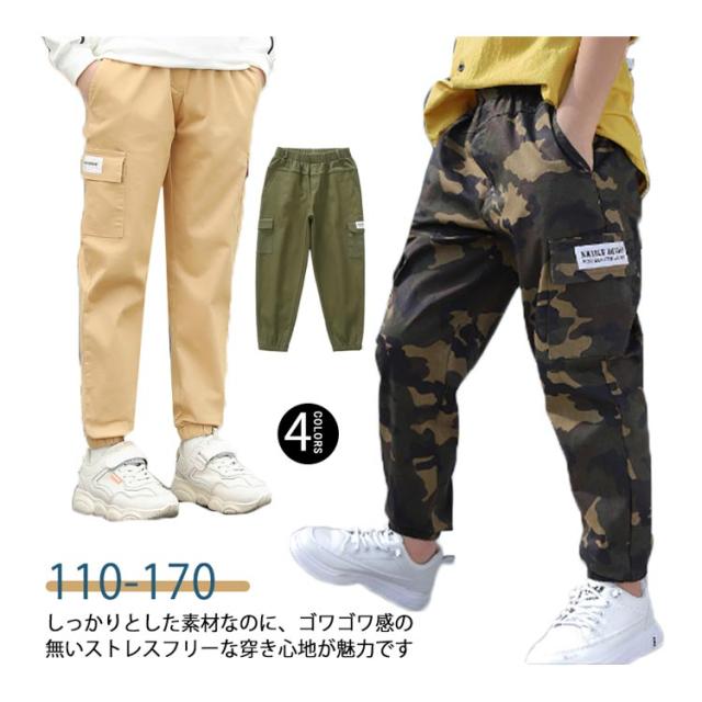 ジュニア スウェットパンツ ロングパンツ キッズ 子供服 ウエストゴム カーゴパンツ カジュアルパンツ ワークパンツ 男の子 小学生 サルエルパンツ 春夏秋冬 イージーパンツ 長ズボン ボトムス 虫除け パンツ ジョガーパンツ 裾ゴム 迷彩