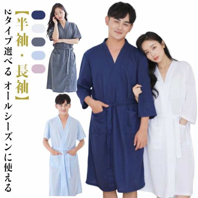 和風 パジャマ メンズ 甚平 男性 寝巻き 浴衣 ワンピース 長袖 半袖 2タイプ選べる 着れるバスタオル 夫婦用 男女お揃い バスローブ カップル 前開き ポケット付き ナイトウェア 寝間着 部屋着 ねまき バスローブ