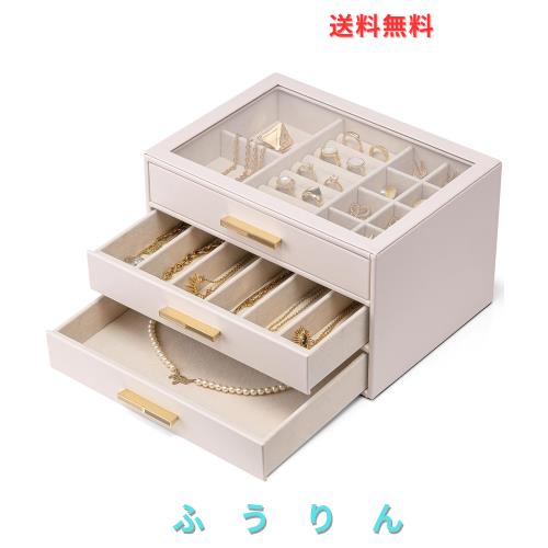 Vlando ガラス蓋 3段引き出し ジュエリーボックス 女性用ジュエリーボックス ネックレス 指輪 イヤリング ブレスレット アクセサリー収納