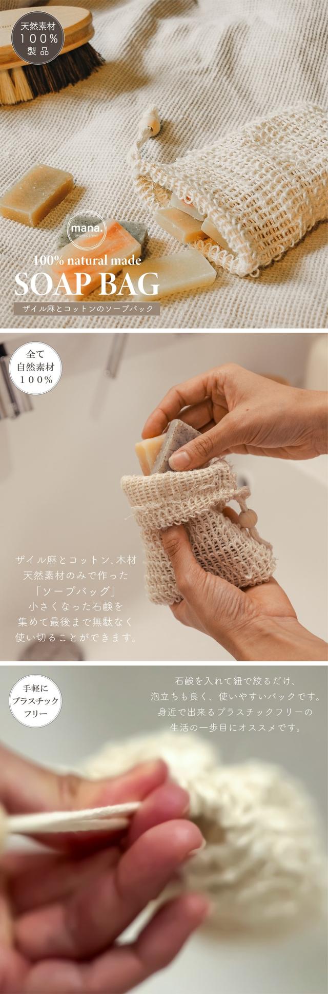 石鹸入れ mana. サイザル麻とコットン製 ソープバッグ 天然素材 固形石鹸 ソープセーバー 手洗い バススポンジ 石鹸ネット ネット 吊下げ 携帯 持ち運び サスティナブル ジム アウトドア SDGs バス用品