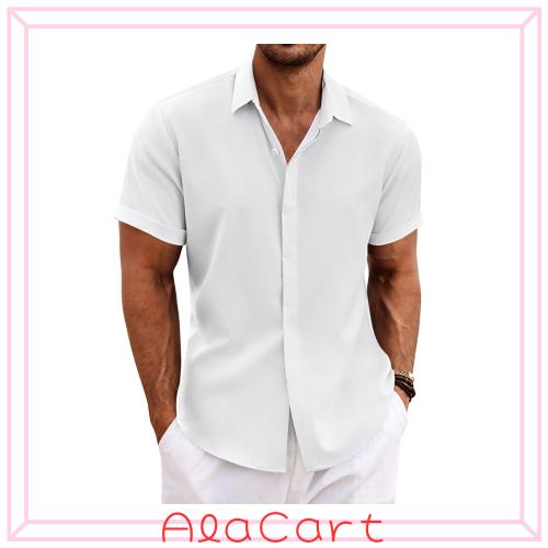 ◆商品名:[COOFANDY] メンズ 半袖 涼感 通気性 リネンシャツ 比翼ボタン 清潔感 レギュラーカラー リラックスフィット カジュアルシャツ 無地 夏服