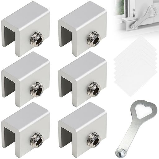セット内容:リミットロック*6個+ネジ*6個、取付工具(垂直ハート型六角スパナ)*1個直径5mm、保護プレート*4本;スライドウィンドウロックはアルミニウム合金製で、耐久性があり、錆びにくく、再利用可能です。スライド窓ロックにはゴムクッションが付いており、窓に傷がついたり傷ついたりするのを防ぎます。
