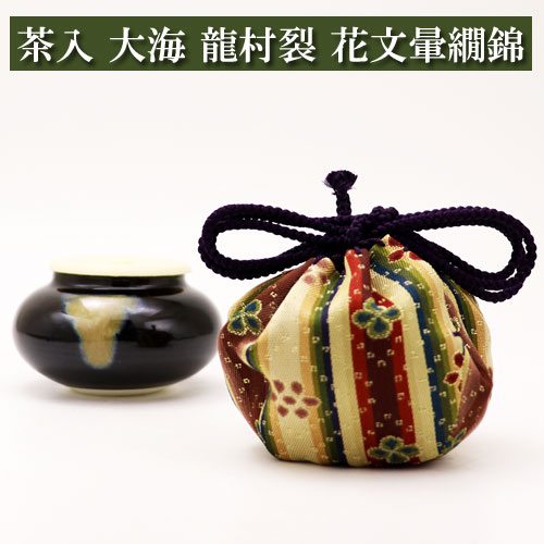 茶入 大海 龍村裂 花文暈繝錦 茶道具 陶磁器 茶の湯用品 抹茶お点前用 なつめ ナツメ 茶入 ちゃいれ 入門 初心者 セット お茶席 お稽古 初釜 裏千家 表流 表千家 千家 武者小路千家 薮内流 抹茶