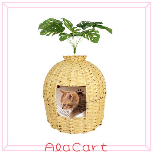 ラタンを採用した猫トイレカバーは、不快な匂いを効果的に抑えることができます。ラタン猫トイレカバーは猫砂が飛び散るのを防ぎます。猫トイレカバーには猫トイレの砂を収集するメッシュマットが付属しており、お手入れ簡単です。猫トイレ収納家具の片側には幅20cm、高さ24cmの小さな猫ドアがあり、猫が自由に出入ることができます。猫トイレカバーの上には物を収納するスペースがあり、猫ブラシ、 猫食器などを置くことができます。猫トイレカバーの中には猫トイレボックスを設置し、猫ハウスも設置できます。猫トイレカバーには、速くて簡単に取り付けるための詳細な取扱説明書が付属しています。