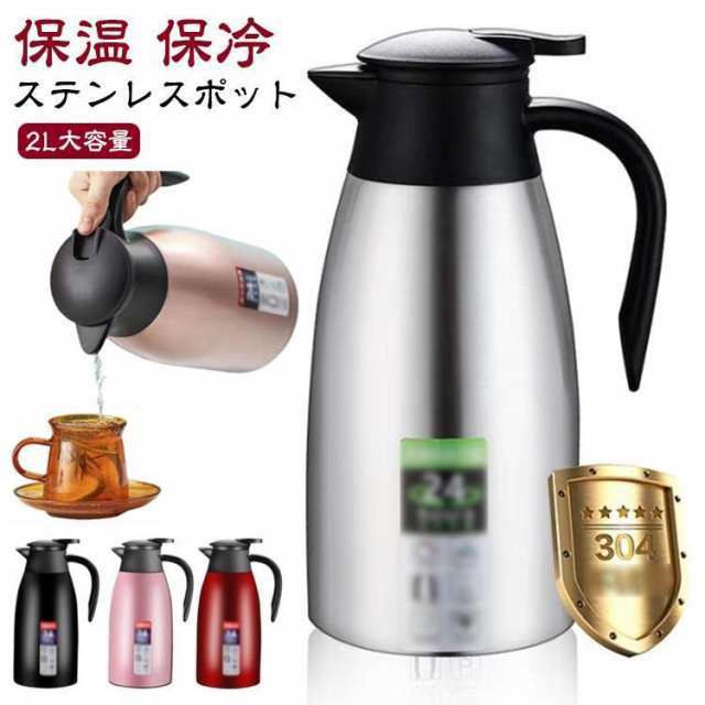 ステンレスポット 卓上 おしゃれ 保温 ポット 広口 保冷 真空断熱 シンプル 2L 北欧 大容量 魔法瓶 氷 ステンレス 卓上ポ