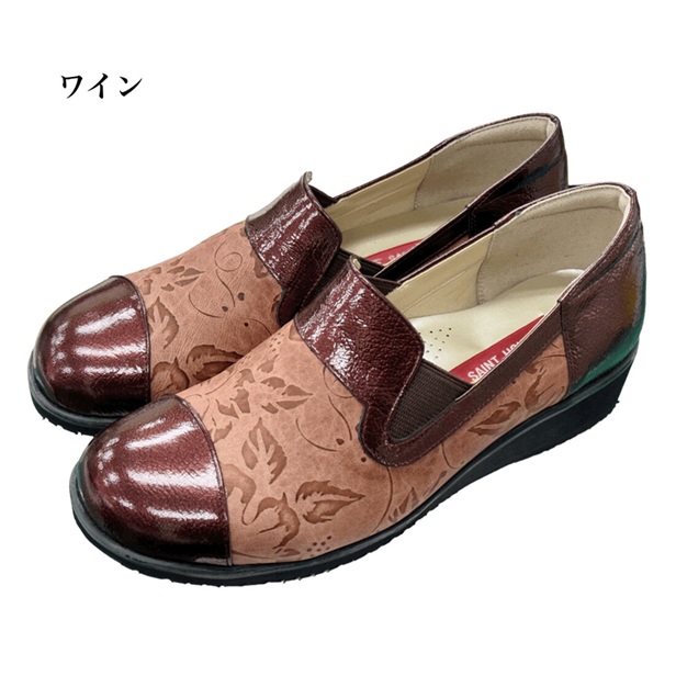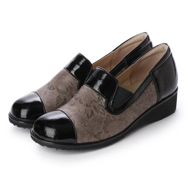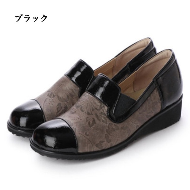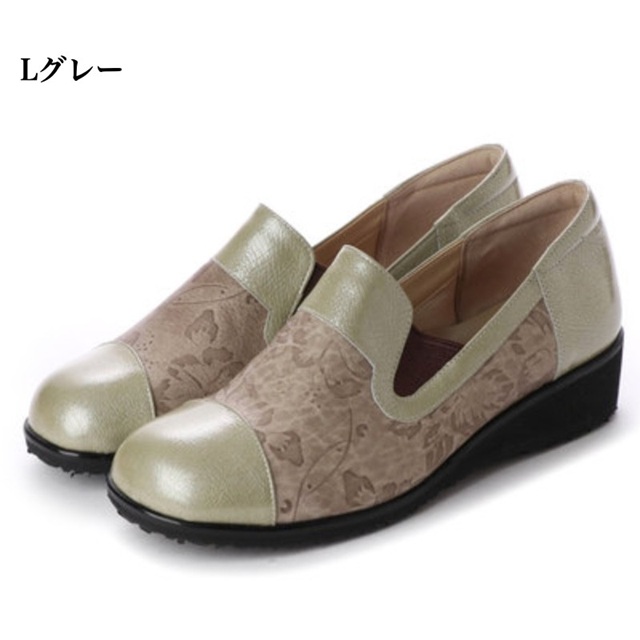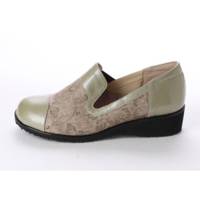ボタニカル柄レザー 楽チン 5Eコンフォートシューズ 。