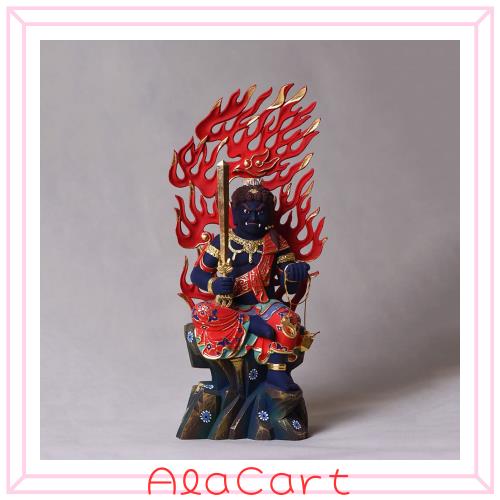 不動明王 仏像 木彫り ツゲ 守り本尊 木製 仏像 厄除け 魔除け (不動明王像-極彩色絵系)(Size:23センチ)