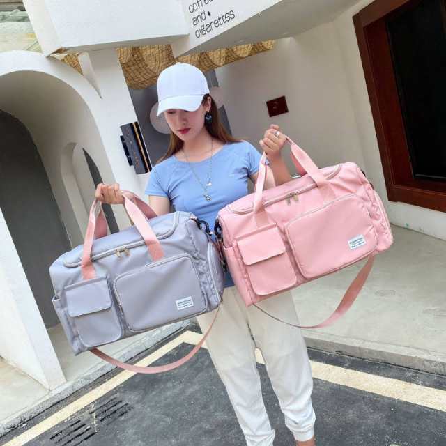 2way ボストンバッグ トートバッグ レディース ショルダーバッグ ショルダー カバン 大きめ かわいい ファスナー 布 斜めがけ 軽い 通勤 通学 高校生 マザーズバッグ 横型 ピンク ブラック グレー パープル