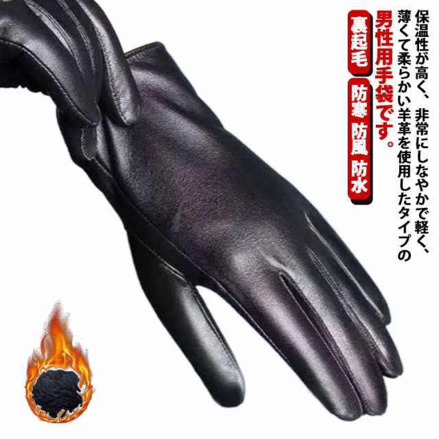 本革 手袋 メンズ レザー スマホ 対応 裏起毛 防寒 防風 防水 暖かい 手ぶくろ 無地 シンプル おしゃれ 5本指 グローブ タッチパネル対応 通勤 通学 普段使い 自転車 バイク 運転 大人 ビジネス カジュアル 羊革 上品 プレゼント ギフト 【送無】